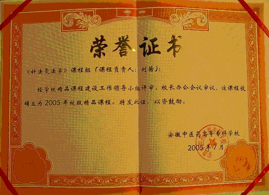 针法灸法学 2005年校级精品课程 课程负责人